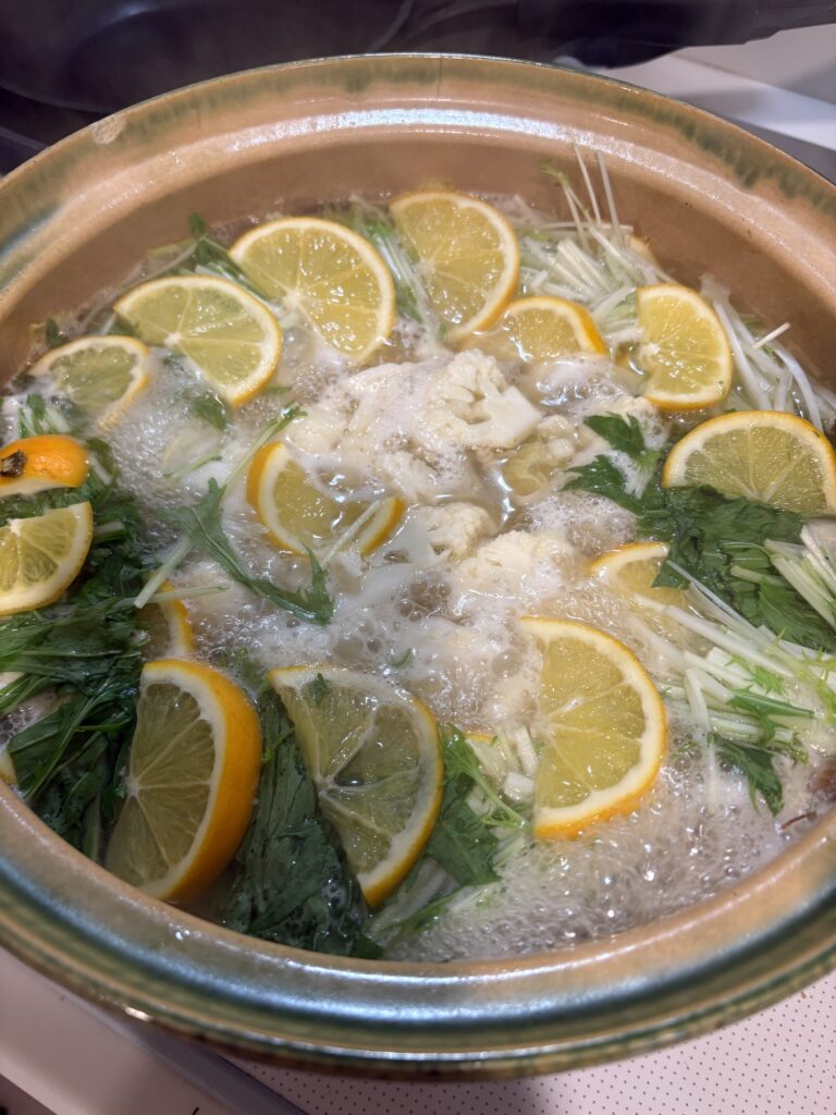 カリフラワーと鶏肉がメインで、レモンを一緒に食べるスープやお鍋もはまっています。
