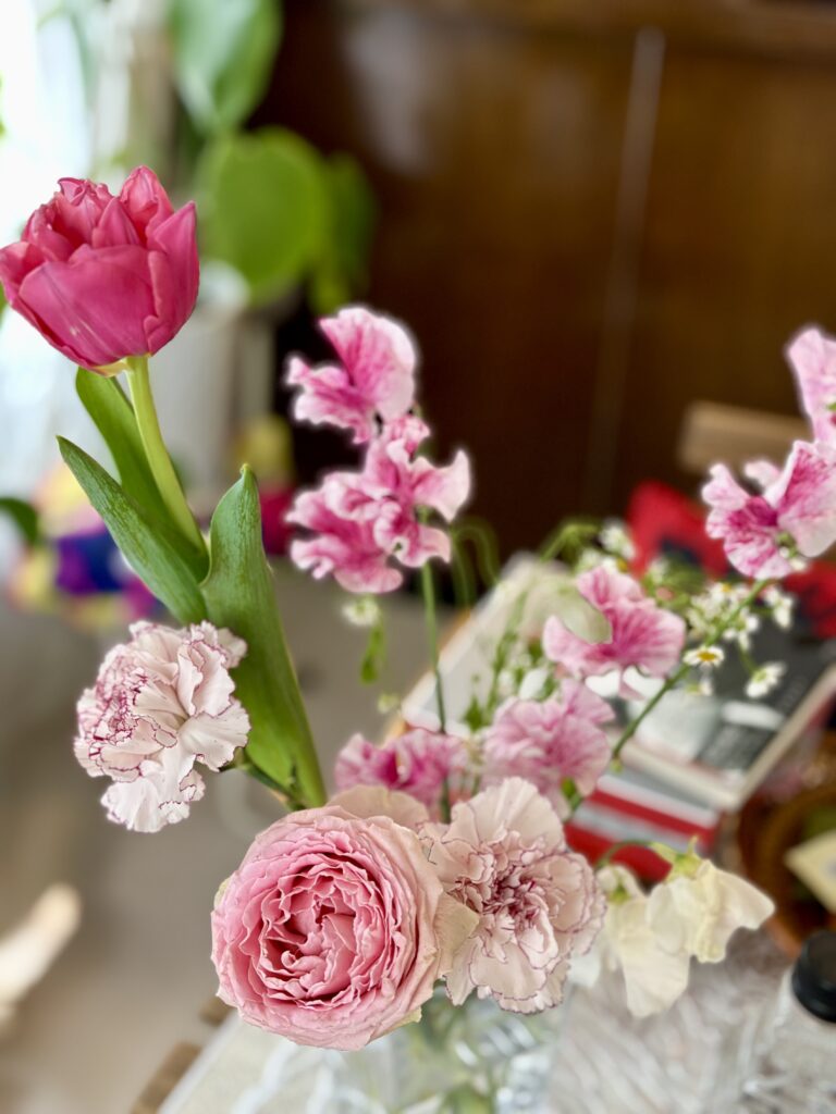 お洋服でもピンクを差し色で着たり、家で飾るお花もピンクが多いです😊