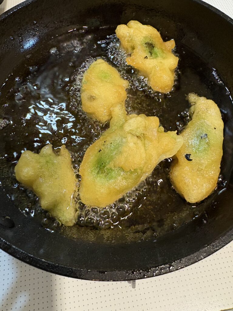 フキノトウのフリット。最高です。大きいものは弱火で中までホクホクになるように揚げる。